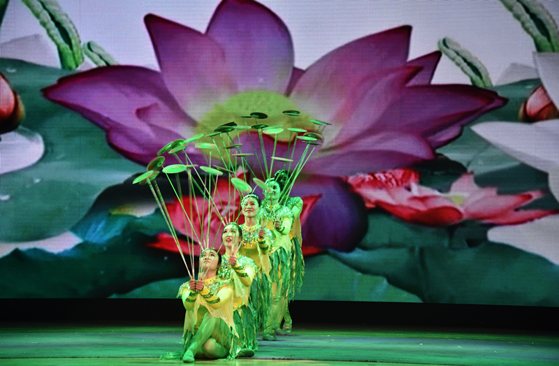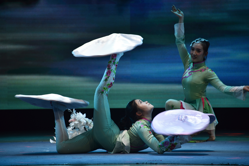 雜技《荷韻--轉碟》曾榮獲全國雜技大賽優秀節目獎,演員們用一根長約一米,粗如鉛筆的竿子頂著碟底,晃動旋轉,看上去似迎風而立的荷花,又若飛舞的彩蝶,優美而抒情。