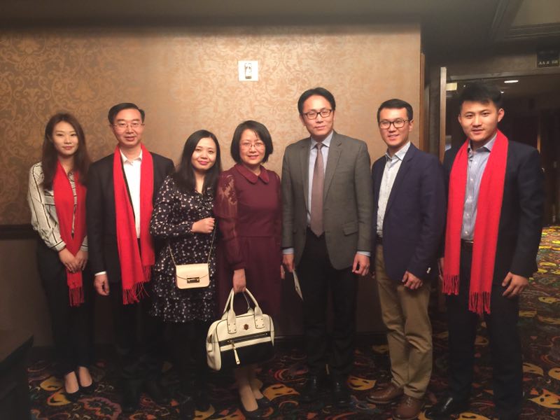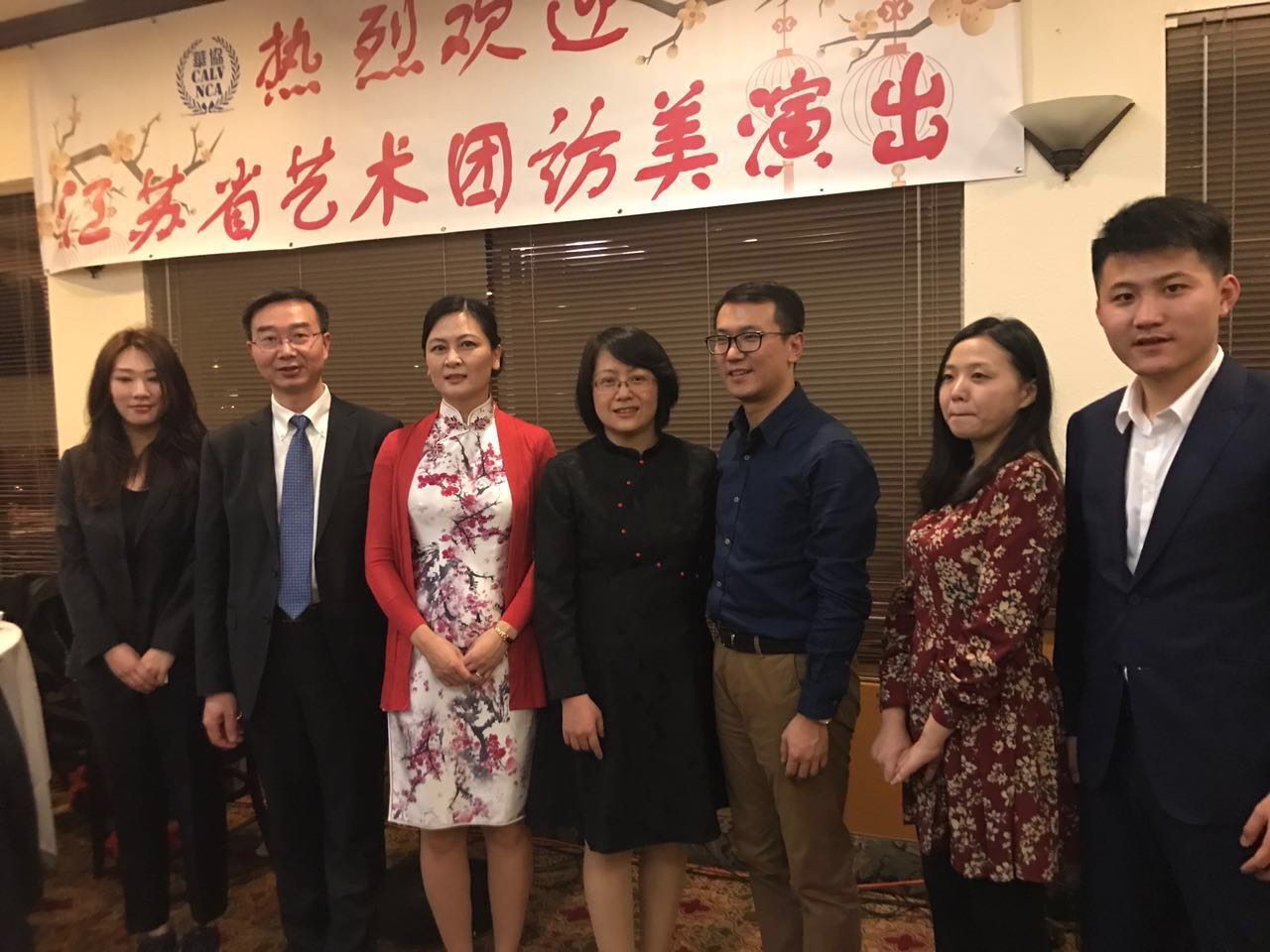 (左二愛濤集團董事長張發松,左三內華達州華人協會副會長王若梅,左四文化廳辦公室副主任曹蕾,右三文化部外聯局美大處副處長金梁,右二文化廳對外文化交流處主任科員俞驍窈)