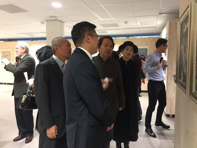 陳日彪公參在致辭中說,“很榮幸也很高興和大家一起成為現代藝術家作品歐洲巡展的第一批觀眾。海牙中國文化中心是中國文化海外傳播與交流的重要窗口,承擔著開展文化活動、教學培訓、思想交流和信息服務這四大職能。也是加深中荷兩國人民互相理解和信任的重要平臺;希望經常能與中、荷兩國藝術家們在海牙中國文化中心相聚,一同品味中國文化的美好,推動中荷文化交流互鑒。”