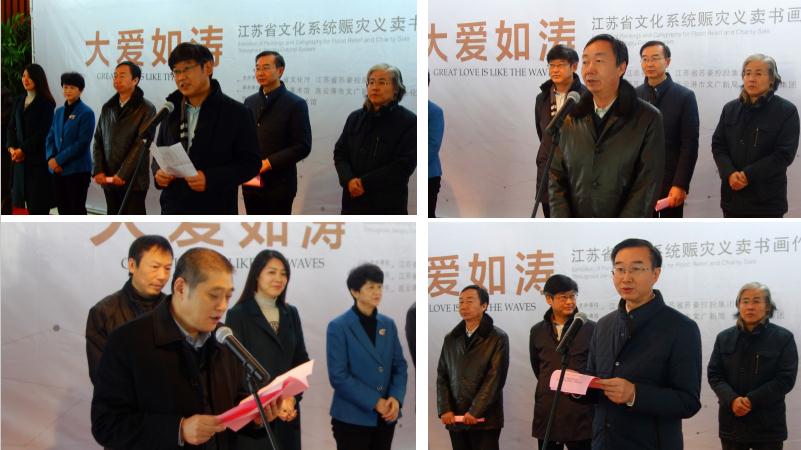 《大愛如濤——江蘇省文化系統賑災義賣書畫作品展》被譽為是江蘇省文化工作者、文化企業共同譜寫的一曲擔當奉獻的正氣歌。此次作品展是繼江蘇省美術館、鹽城市圖書館展覽之后的第三站。