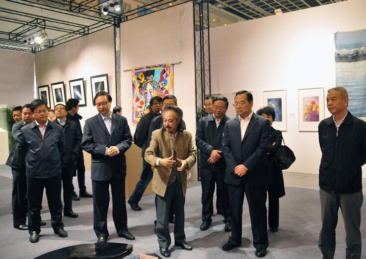 11月3日下午,蘇豪控股集團董事長王正喜,總裁周勇陪同江蘇省副省長張雷參觀“紫金獎”文化創意大展,一行專門參觀了由江蘇省蘇豪控股集團主辦,江蘇愛濤文化產業公司承辦的民間工藝與時裝設計專項賽作品展。