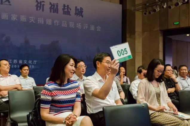 “情系災區 祈福鹽城”江蘇省文化系統書畫家賑災捐贈作品慈善義拍活動于7月8日上午在江蘇省美術館正式舉行。本次慈善拍賣活動起拍價150萬,經過多輪激烈的舉牌,最終,此次捐贈作品以310萬元的價格被愛濤文化集團拍下。