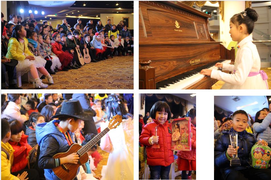 演出中,“小小演奏家”們表演了自己的拿手曲目。靈動的手指在黑白琴鍵上跳動出華麗的舞蹈,悠揚的琴聲余音繞梁。動感的吉他彈唱也令人欣喜。孩子們以行云流水般的演奏、落落大方的臺風贏得了觀眾的陣陣掌聲。